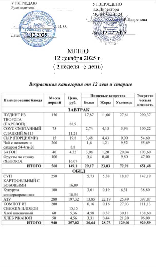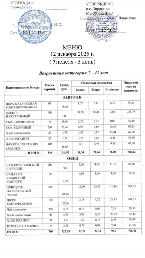 Нашей школе оказывает услуги по организации питания и поставляет продукты и продовольственное сырье ООО «Кубанская степь»